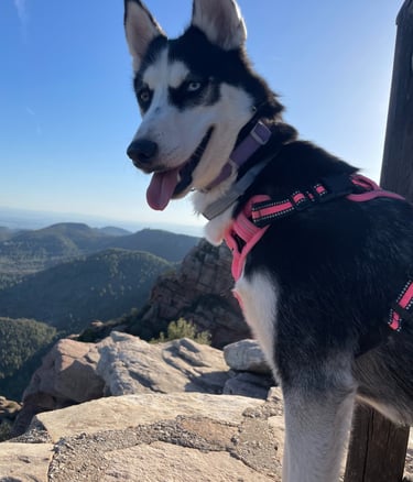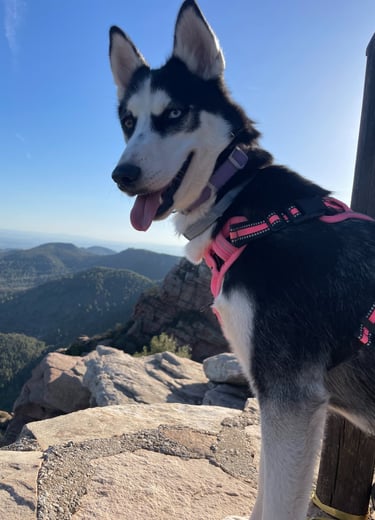 El nombre de nuestra empresa, DANA Bordados, está inspirado en nuestra fiel compañera, Dana, una hermosa Husky que nos acompaña en esta aventura.